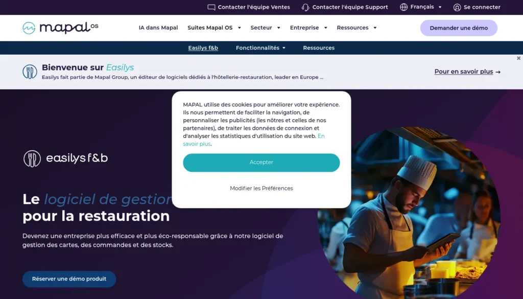 Easilys a été racheté par le groupe espagnol MAPAL en 2021. La solution est désormais intégrée dans la suite MAPAL OS, qui combine gestion cuisine, planning RH, formation et audits qualité.